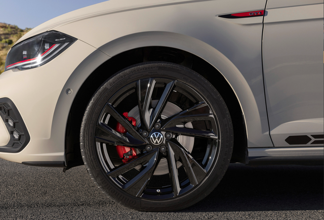 新车还将提供炭黑色18寸轮毂,有着不错的视觉效果,红色刹车卡钳也是符合自身的调性,翼子板还增加了专属铭牌,车身的腰线也是比较锋利,很有力量感,继承了大众车型的设计特点,车门下方还增加了专属拉花,尾部更像是小号高尔夫,尾灯内部均采用LED光源,大众LOGO下方还提供GTI字母标识,排气采用单边双出式设计,性能范还是比较足的。