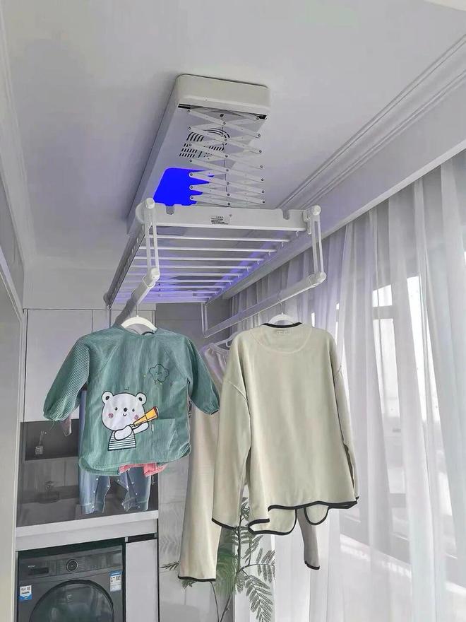 本以为电动式的晾衣架就是科技终点了,没想到还有带热风烘干、紫外杀菌的“智能晾衣架”。