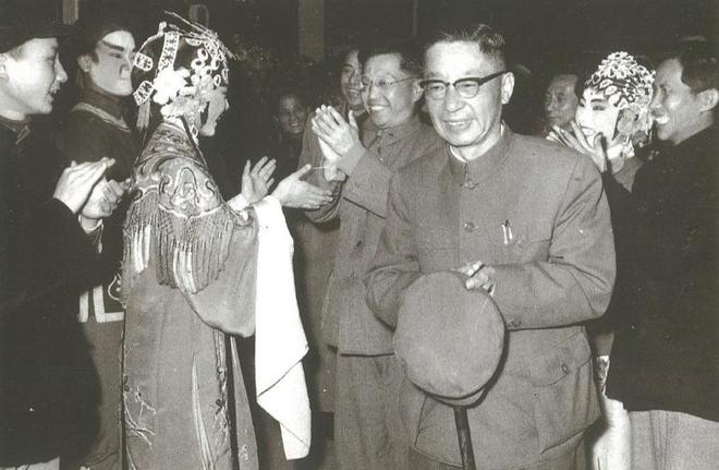 1962年4月,老舍与曹禺等观看莆仙剧《春草闯堂》。(舒济、舒乙、金宏编著《老舍》,燕山出版社,1997)