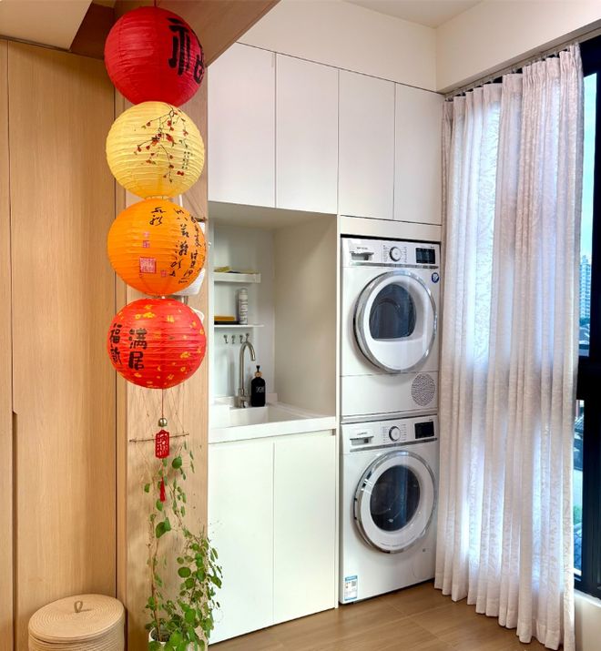 阳台洗衣机柜无需多说,我个人是不建议那种只放洗衣机做个洗手台的做法,实在是浪费了太多空间。