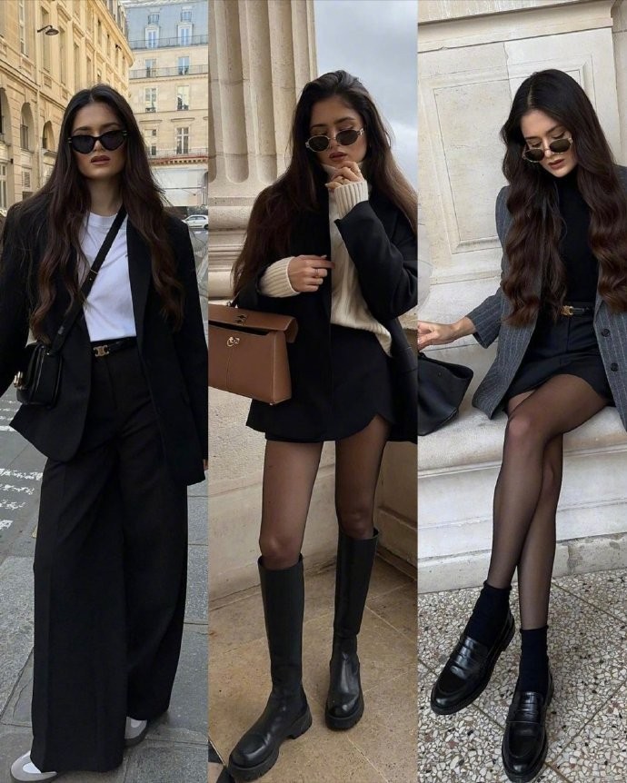 gavanndi 的穿搭智慧,更在于将法式 “不经意的精致” 发挥到极致。她擅长制造精妙的冲突感:挺括西装肩线与柔软针织内搭的对话,粗花呢半裙与光滑真丝衬衫的碰撞,看似慵懒随性的叠穿,实则是 “三明治法则” 与 “材质交响曲” 的精心演绎 —— 春季的真丝衬衫 + 针织开衫 + 羊毛半裙,冬季的绗缝大衣 + 马海毛针织 + 双绉真丝衬衫,在温度与风度间找到完美平衡。她的造型从不追求刻意的 “时髦感”,而是通过解开衬衫最上方纽扣、将男士领带变形为不对称项链等细微调整,让通勤装无缝切换为晚宴造型,这种 “80% 基础款 + 20% 设计元素” 的公式,正是现代法式 OL 装的革新核心。当她身着高腰烟管裤搭配平底方跟鞋走过圣日耳曼大街时,那些隐藏在袖口内侧的回针车线、连衣裙接缝处的 0.3cm 隐形包边,都在无声诉说着:真正的高级从不需大声宣告,它藏在每一处用心的细节里,如同 gavanndi 本人,在喧嚣的时尚世界中,以一种沉静而笃定的姿态,诠释着 “人富衣素” 的永恒优雅。