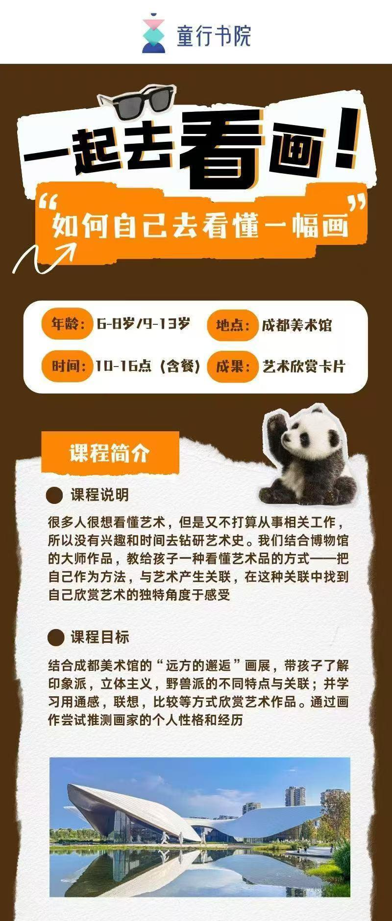 “在活动中,我们会结合成都美术馆的‘远方的邂逅’画展,带孩子了解印象派、立体主义、野兽派的不同特点与关联,教给孩子一种看懂艺术品的方式。”童行书院成都俱乐部教学主管刘俊强介绍。