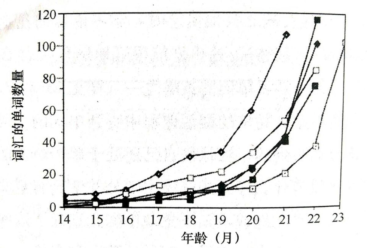 美国相关机构曾经进行过一次调研,调研的内容是孩子对于词汇的记忆掌握情况,结果发现,孩子在一岁半的时候,每个月能够掌握约8个新的词汇,在两岁的时候,能够掌握的词汇数量将会出现爆发式激增。