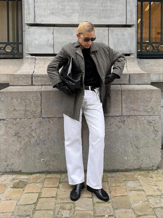 janneaunan的秋冬穿搭,最让人着迷的便是那份深入骨髓的“法式慵懒感”。她尤其擅长利用宽松版型的单品打造随性氛围,比如一件oversize的米色针织 sweater,她会选择将下摆随意地塞进一条高腰直筒牛仔裤里,露出一点点腰线既不会显得拖沓,又能勾勒出轻松的轮廓感;脚上搭配一双复古的棕色乐福鞋,再拎一个藤编手提包,整个造型瞬间充满了法式田园般的惬意。即使是穿着正式的大衣,她也会刻意不系紧纽扣,让衣襟自然敞开,内搭一件简单的条纹衬衫,营造出“不经意间的潇洒”。这种不刻意追求完美的穿搭态度,反而让她的造型更具生命力,无论是漫步在秋日的街头,还是坐在咖啡馆的窗边,都能成为一道独特的风景。