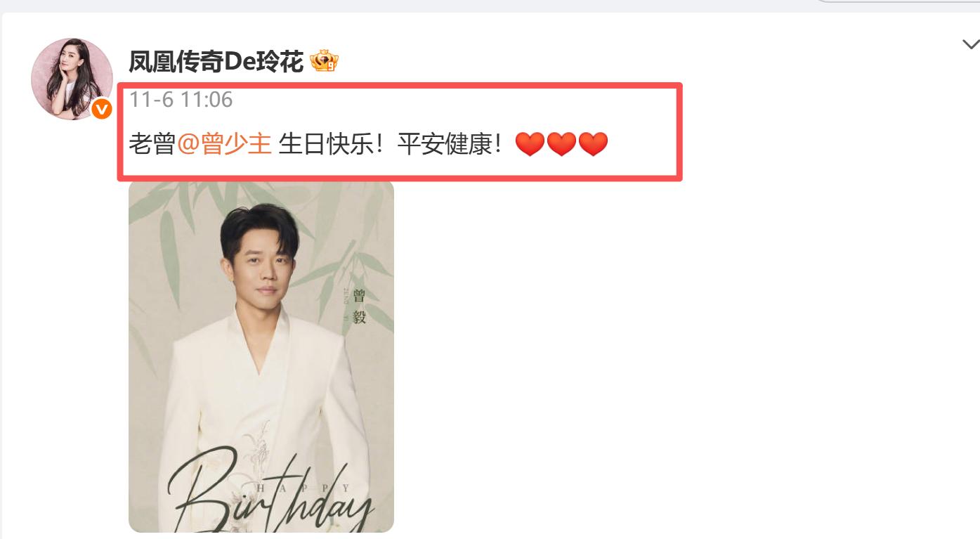 11月6日,曾毅52岁生日那天,玲花卡点发了一条微博为他庆生。