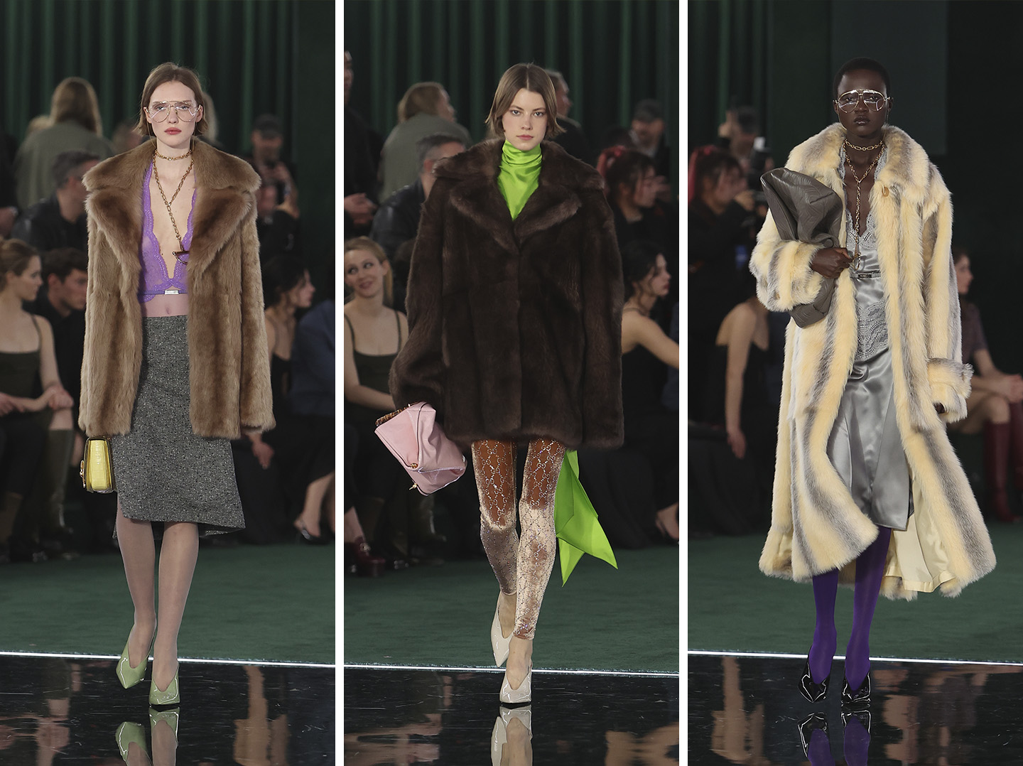 在古驰2025秋冬系列中,皮草元素主要以大衣形式呈现,长或短款或是无袖设计。本季,古驰强调一种独特的意式风格,这种风格以“sprezzatura”(漫不经心)为特点,即完美的不完美、深思熟虑后的不经意,而这种生活方式和着装风格自品牌创立之初便已成为其美学的核心。人造皮草的融入很好地诠释了这种风格,华丽感自然流露,柔软而温暖,既具有普适性又充满个性。