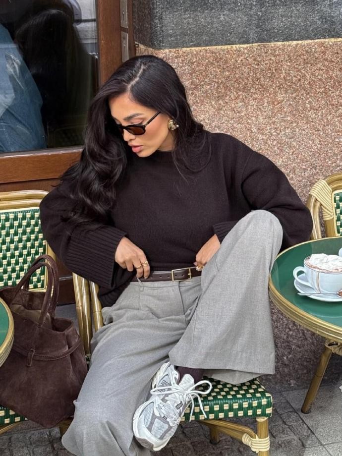 在单品选择上,Samira 很懂 “选对版型比追款式更重要”。她会根据自己的身材特点挑选单品,比如梨形身材的女生常纠结的下装,她会选高腰 A 字半身裙或直筒阔腿裤,前者能遮住胯部和大腿的肉肉,后者能拉长腿部线条;上衣则选短款或腰线明显的款式,优化身材比例。她还很爱收藏一些 “有设计感但不夸张” 的单品,比如带有金属纽扣的牛仔外套、袖口有褶皱设计的衬衫、裙摆带开叉的长裙,这些小设计不会让单品显得突兀,却能让整体造型更有细节感,哪怕搭配简单的内搭和下装,也能看出穿搭的用心。
