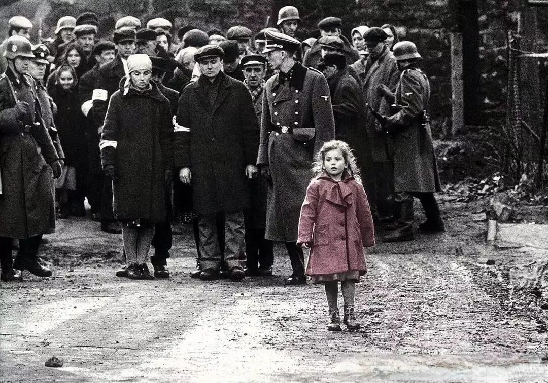 最让人揪心的镜头,是那个穿红色外套的小女孩,在黑白画面里格外刺眼。辛德勒看着她穿梭在混乱的街头,最后却出现在运尸车上,那一刻,他彻底醒悟。他开始不惜代价拯救犹太人:他贿赂纳粹军官,把工厂变成 “避难所”;他列出 “辛德勒名单”,尽全力保护名单上的人;最后他倾家荡产,买下了 1100 多名犹太人的生命。