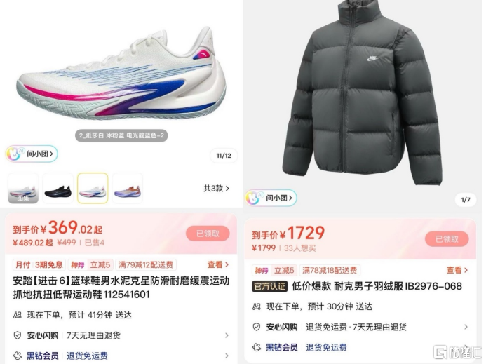 ▲闪购耐克、安踏等大牌可获退货免运费。