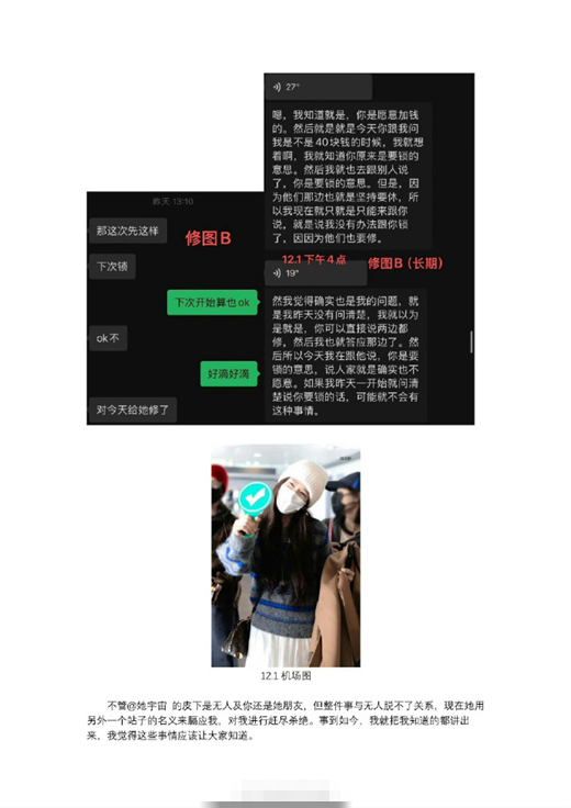 除了行程特权,“无人及你”还被指控利用这些特权进行牟利活动。在云包场项目中,她通过专属五折链接承包粉丝云包场项目,然后转手以全价售卖抽抽乐(抽奖礼包),从中赚取巨额差价。有一位单名粉丝为了支持偶像,在这上面氪金高达3万元,占其包场总费用的33%,这可不是一笔小数目。而且,“无人及你”还多次高价抢走其他站姐长期合作的修图师,甚至要求修图师违约转为自己服务,导致其他站子无法正常出图,严重影响了其他站姐的追星体验和正常运营。