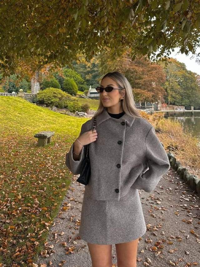 在色彩运用上,katherine_bondd完美诠释了伦敦时尚的“低调高级感”。她的秋日配色以中性色为基础,如深灰、藏蓝、卡其、墨绿等,这些沉稳的色调不仅适配秋季的氛围,还能轻松打造层次感。但她从不局限于单一色系,偶尔会加入亮色或印花作为点睛之笔:比如用酒红色针织衫搭配深灰色格纹西装裤,或是在全黑look中加入一条带有碎花图案的丝巾,亮色与印花的占比恰到好处,既不会打破整体的和谐感,又能瞬间提升造型的吸睛度。更值得一提的是,她很擅长运用“色彩呼应”技巧,比如贝雷帽的颜色与鞋子相呼应,包包的颜色与内搭相匹配,这种细节上的巧思让整体穿搭更显完整统一,高级感也随之倍增。