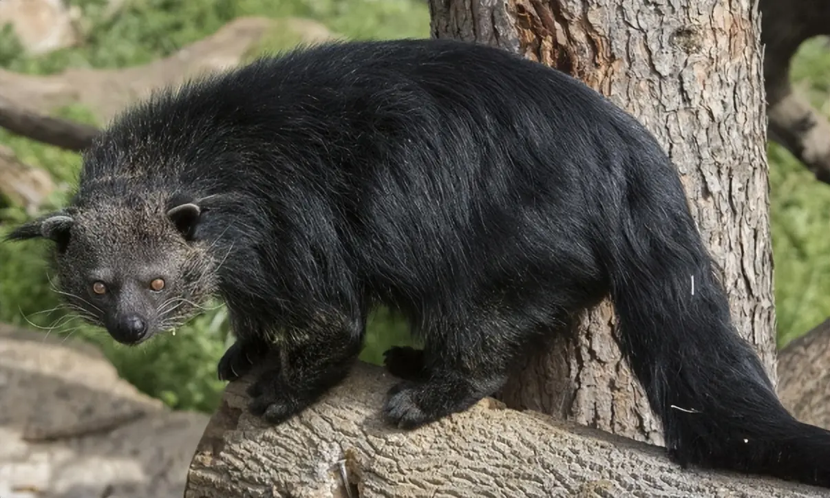 它体型敦实,身长可达七八十厘米,披着一身又长又蓬松的黑褐色毛发,也是灵猫科中唯一长素色皮毛的动物。