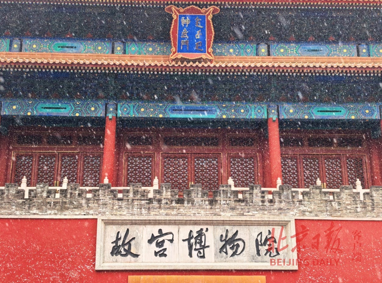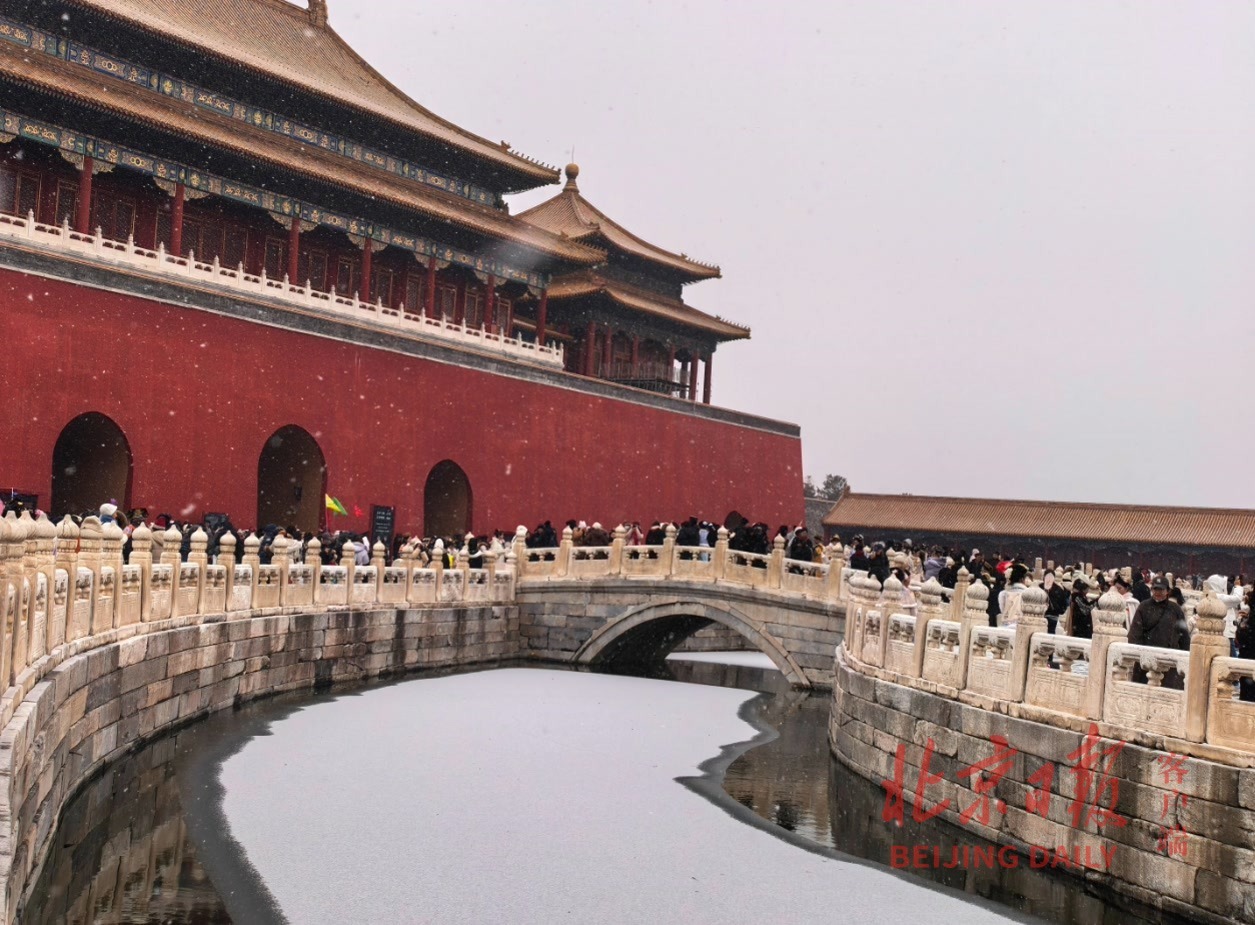 “真的下了”“下大了!快拍,能感觉到雪了”……纷纷洒洒的雪飘洒在故宫博物院,观众纷纷举起手机,找角度记录。