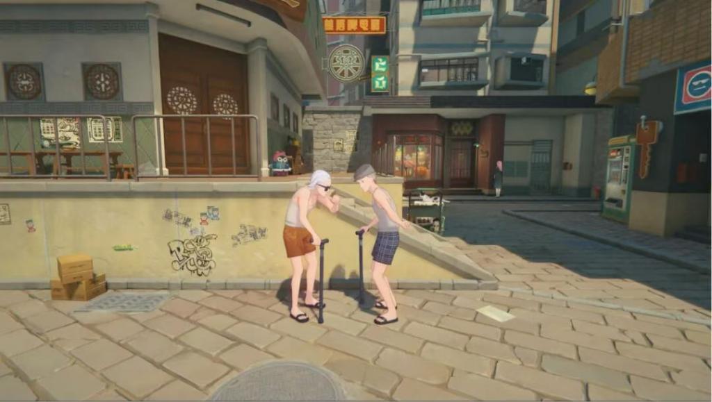 最突出明显的,就是“饮茶仙”了。该名词对应着粤语中的“饮茶先(先喝茶)”,前者语境文化中大致为“忙里偷闲”的意思,并且还与之前的网络热梗“三点几了,饮茶先”相呼应。所以,该场景一经上线,就被许多玩家看作是“卫非地”的标志性建筑,争相打卡拍照。