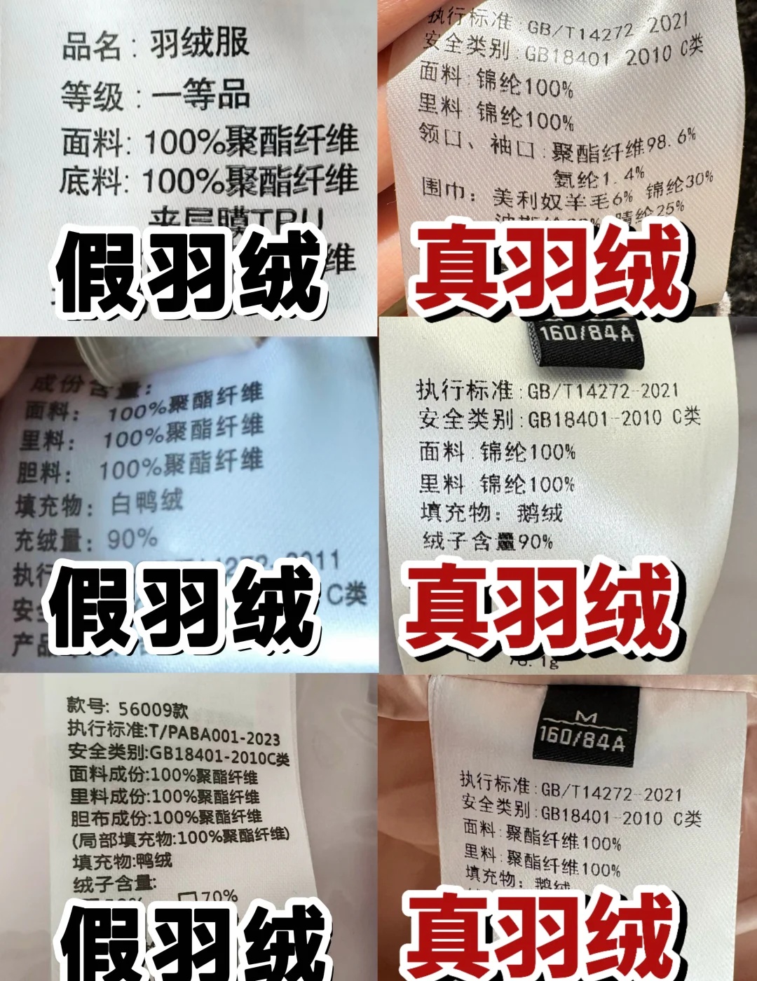 所以大家在买羽绒服的第1件事就是看标签,并不是所有的羽绒都叫真羽绒,新国标明确规定绒子含量必须≥50%才能叫做羽绒服。