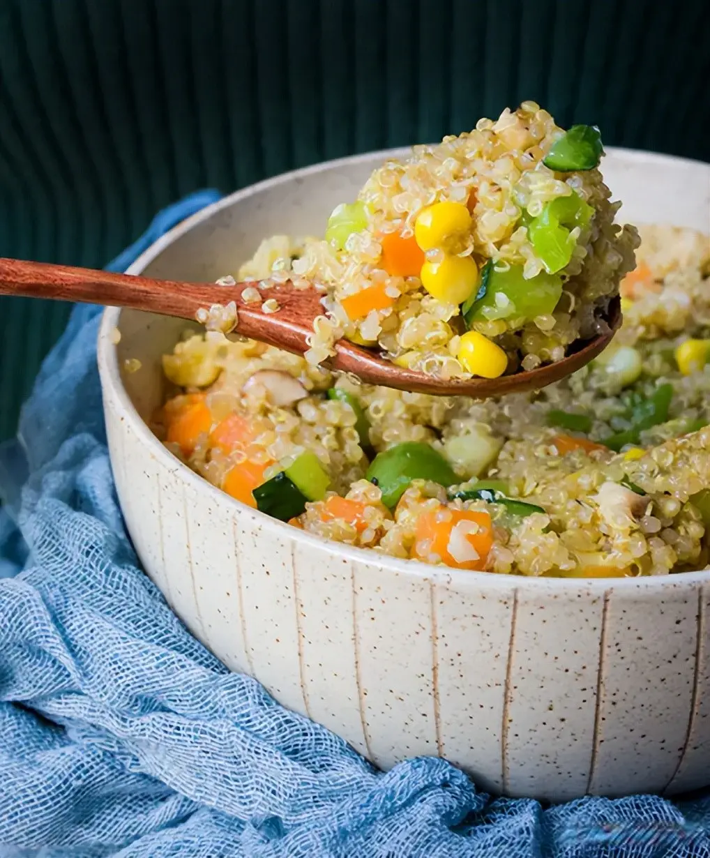 7. 将拌好的杂蔬藜麦饭装盘即可。