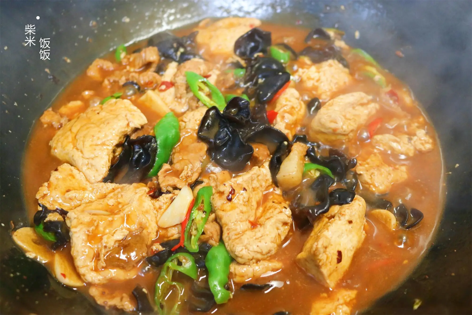 【食材】柴火豆腐、猪肉、木耳、青红辣椒、青蒜苗、葱、姜、蒜、盐、郫县豆瓣酱、豆豉、生抽