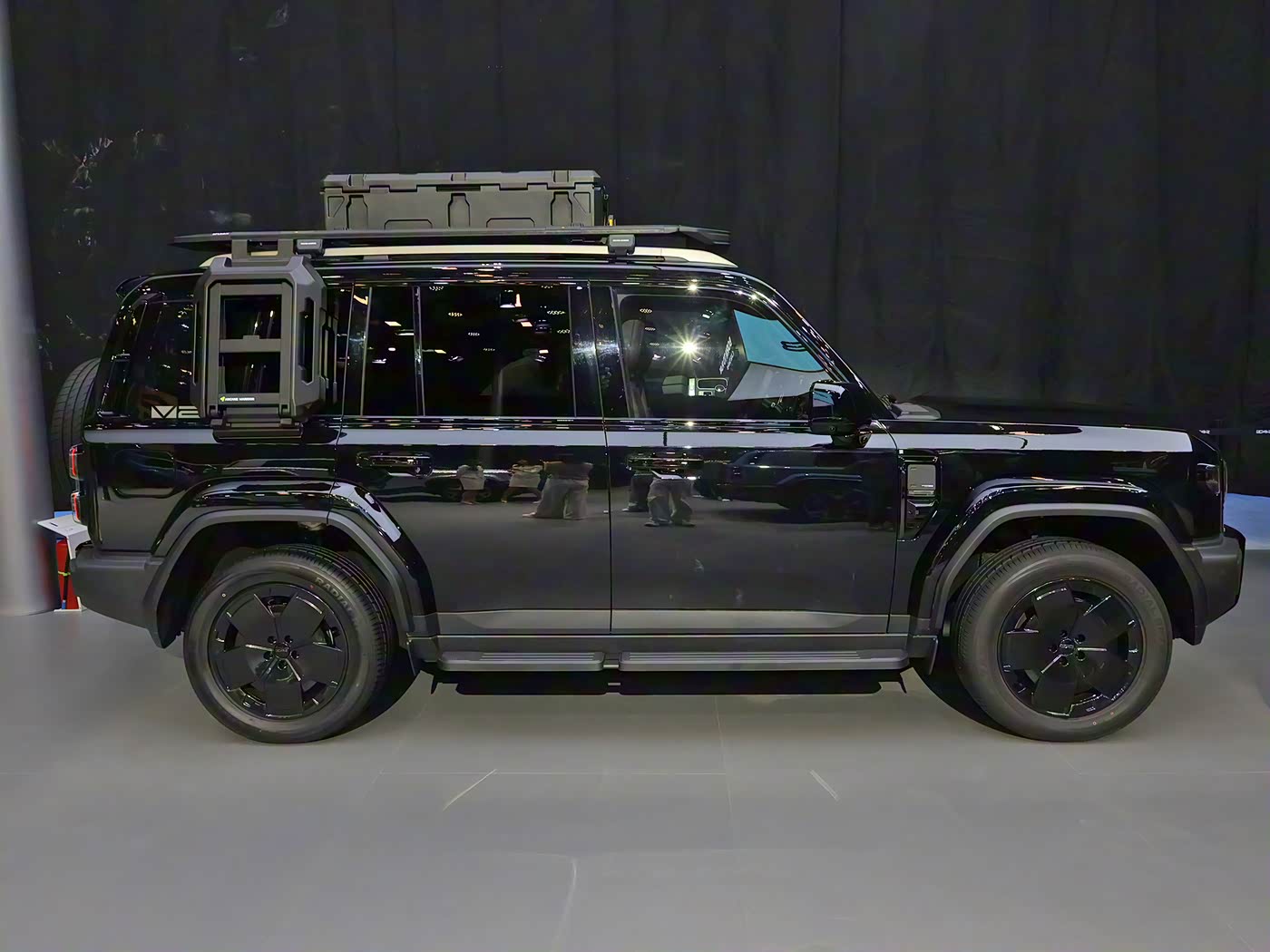 再来看车尾部分,V27采用了经典的方盒子设计,4909mm(越野版5055mm)的车长与2910mm的轴距,确保了宽敞的内部空间。外扩式轮眉、D柱盲窗、外挂式备胎等细节设计,不仅提升了车辆的通过性,更强化了硬派SUV的视觉冲击力。19英寸和21英寸轮辋的搭配,兼顾了城市驾驶的舒适性与越野场景的实用性。黑色车顶行李架与车窗装饰条的加入,进一步提升了车辆的时尚感。