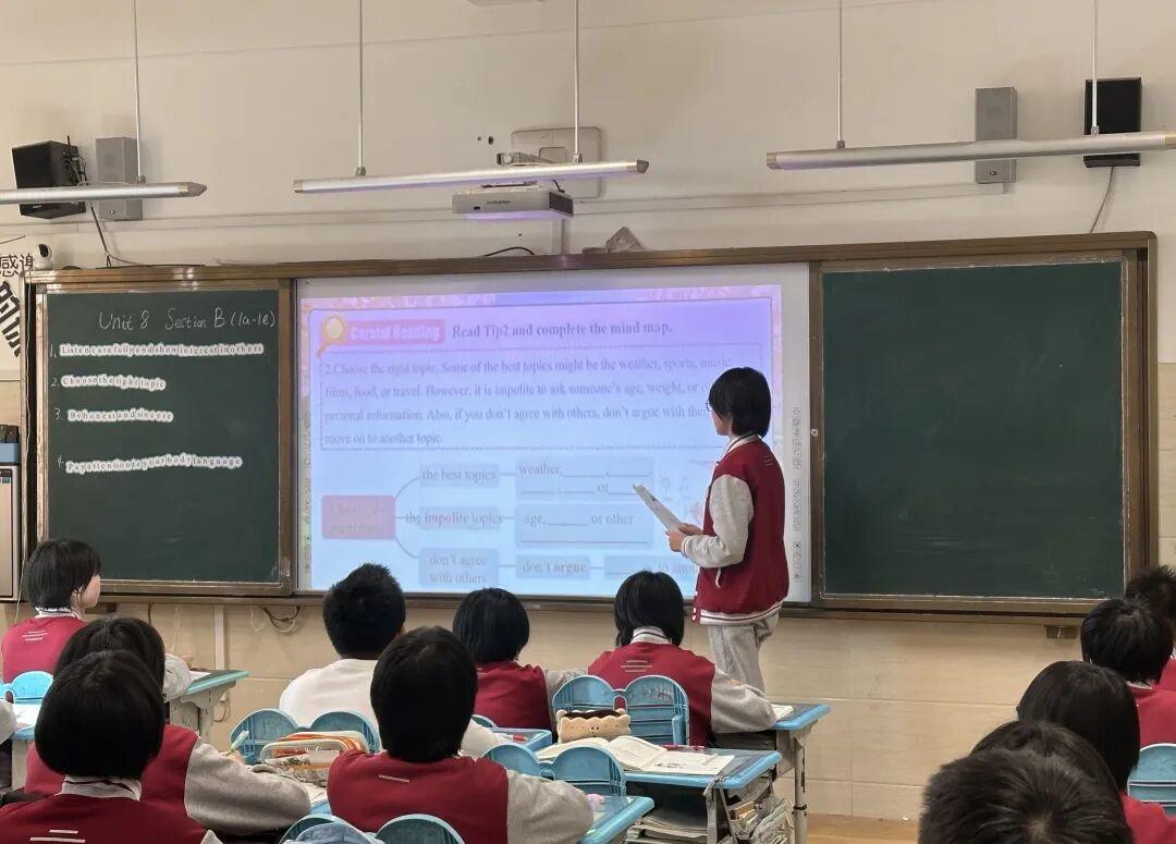 汇报课现场,两位青年教师各展所长,呈现了两堂高质量的英语教学课。刘广晨以任务驱动式教学为主线,设计了学生卡填写、时间表梳理、结对问答、简短报告撰写等层层递进的课堂任务,将知识学习融入实践操作中,引导学生在自主完成任务的过程中主动理解文本内涵、灵活运用语言知识,有效摒弃了传统课堂单向灌输的教学模式,充分调动了学生的参与积极性。