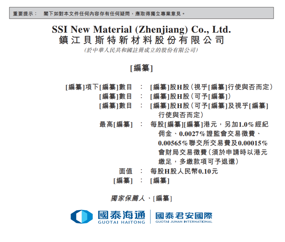 瑞财经 王敏 1月13日,据港交所官网,镇江贝斯特新材料股份有限公司(以下简称“贝斯特新材”)向港交所提交上市申请书,独家保荐人为国泰海通。