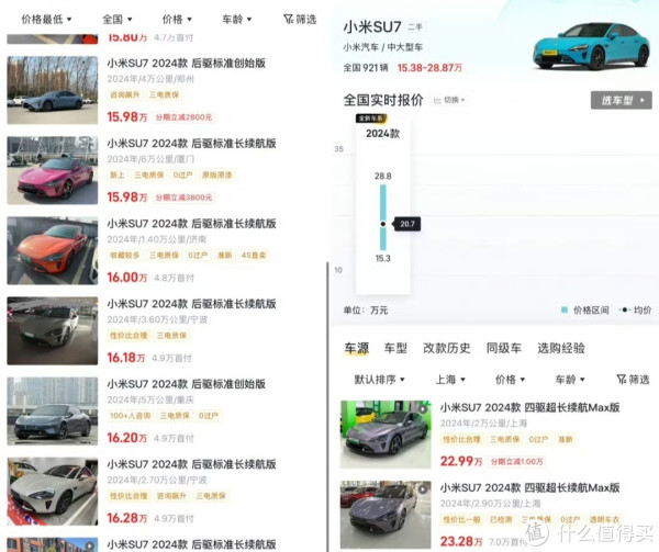 小米SU7 Ultra作为2025年年初上市的旗舰车型,新车落地价约53万元,但当前二手准新车价格已跌至41.2万元,部分行驶1万公里的车辆跌幅甚至超过15万元。同时,标准版SU7的二手车均价也跌至20.7万元,半年内贬值5万元,最低价的SU7(6万公里)仅售15.3万元。