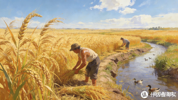 正午时分,列车驶入平原。一望无际的稻田里,稻穗饱满金黄,风一吹便掀起层层麦浪,与蓝天白云相接,天地间尽是开阔。田埂上,几位农人正忙着收割,汗水浸湿了衣衫,却挡不住脸上的笑容。远处的小河蜿蜒曲折,水面上几只野鸭悠闲游弋,偶尔扎进水中觅食,激起一圈圈涟漪。