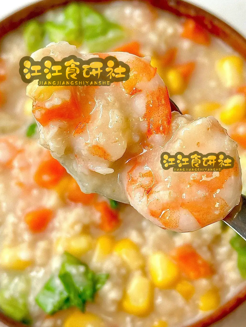 入口是燕麦的滑、虾仁的弹、青菜的脆。