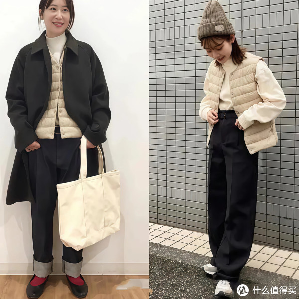 ②三明治叠穿法,羽绒服选薄款