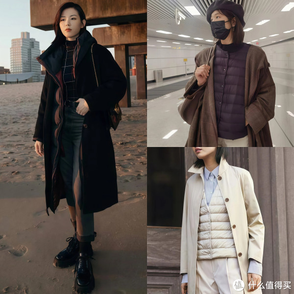寒风起,若只在羽绒服里面叠穿一件的话,其实保暖效果是不尽人意的,所以还是推荐三件叠穿的方式!害怕出错,不妨可以选择和外套同色系的内搭,然后我们可以再用基础色进行过渡,高级感扑面而来。