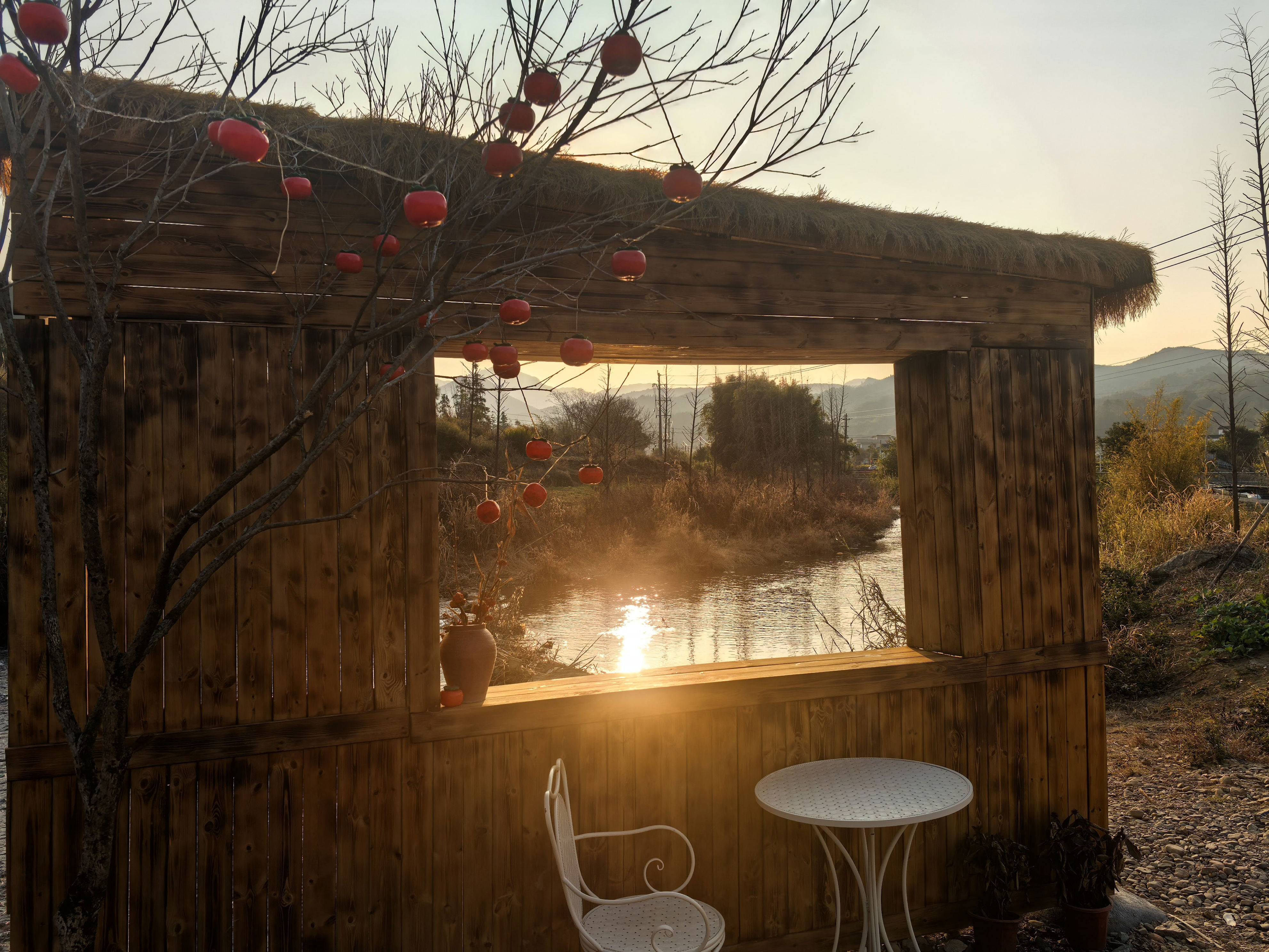 走进松林村,清澈溪流穿村而过,8栋错落有致的木屋别墅掩映在翠竹山林间,汤泉泡池、牛栏咖啡厅、松果餐厅等配套设施一应俱全。村子里随处可见可爱的墙绘、有趣的标语、小巧的书吧。门前是西洋菜基地,田埂上灯笼飘荡,木板路直通到小河边。而清澈见底的河水中倒映着夕阳,河滩上架着帐篷,对着青山品香茗,也不失为赏心乐事,怪不得那么多驴友视这里为世外桃源般的休闲胜地。