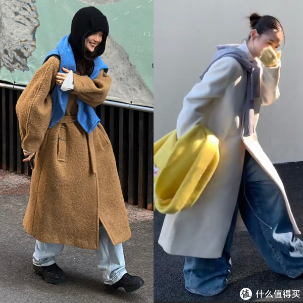 牛仔作为时尚圈永不过时的单品,与大衣的搭配更是经典中的经典。版型上可以选择当下流行的马蹄牛仔裤,与大衣廓形构成“松紧结合”的穿法,时髦又复古。最关键的是,“马蹄牛仔裤+大衣”对身高不占优势的女生也十分友好,同时在搭配上强调腰线位置,照样可以起到显高效果。