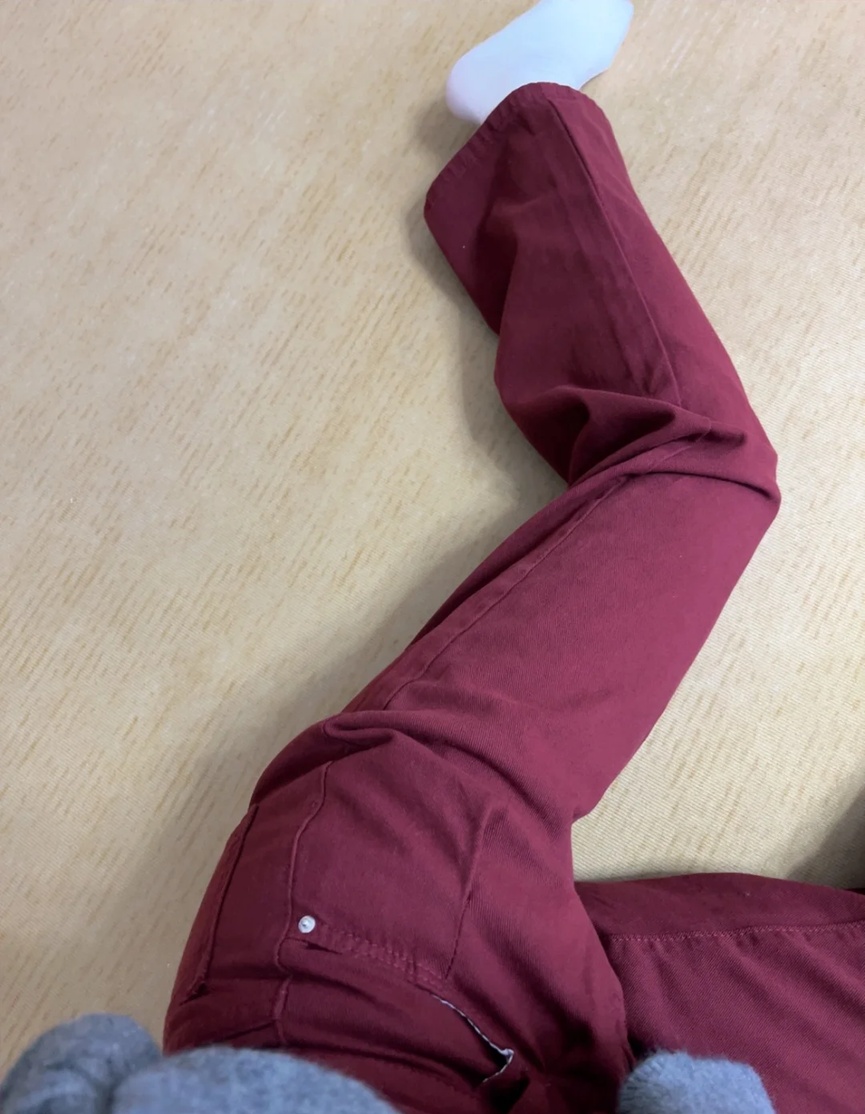 前几天我在朋友圈看到一位服装店员发的红色裤子,感觉裤子的版型不错,