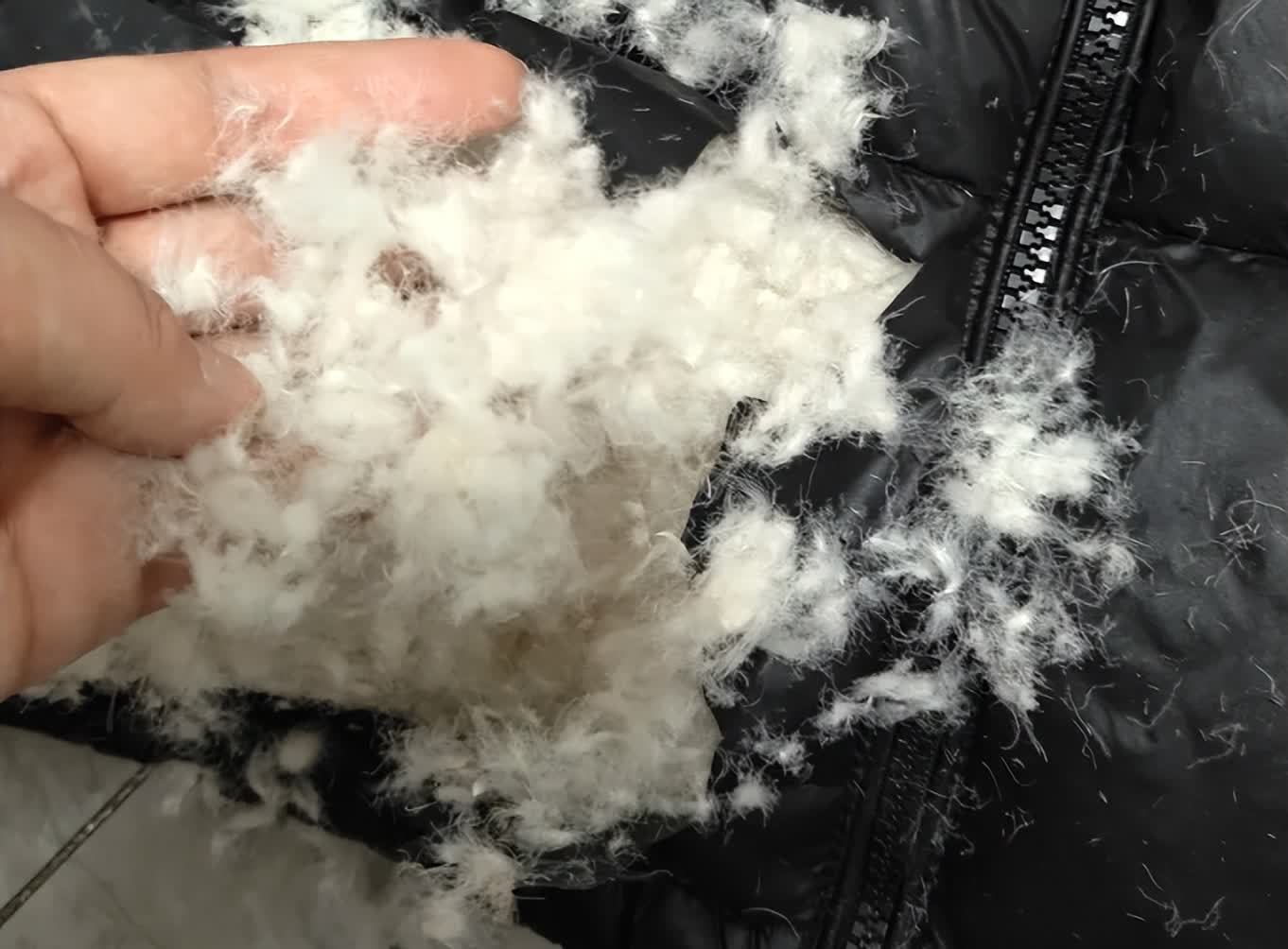 买回家的便宜羽绒服,它里面的填充物都不好,全部都是边角料,保暖差,还容易结块。