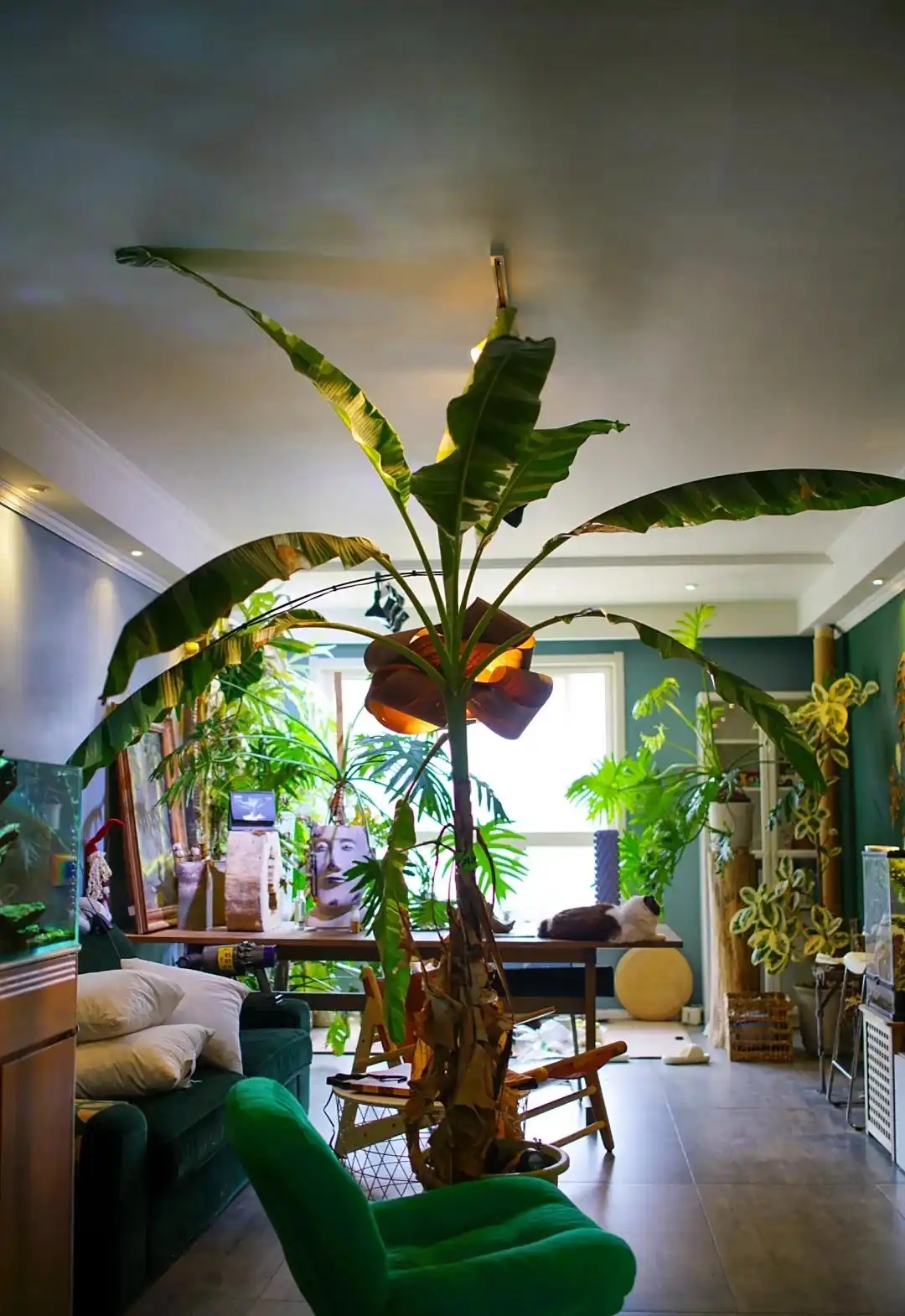 放一盆香蕉树,享受绿意和生活,简单又好玩,让梦想变成现实,像他们一样把客厅变成热带乐园吧!