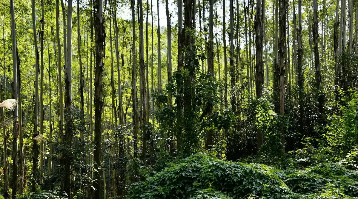 关于"桉树有毒导致林下寸草不生"的说法,更是对种植方式的误读。早期部分种植户为追求产量,采取高密度种植(每亩超过110株)并滥用除草剂,导致林冠郁闭度太高,林下植物因缺乏光照而难以生长。