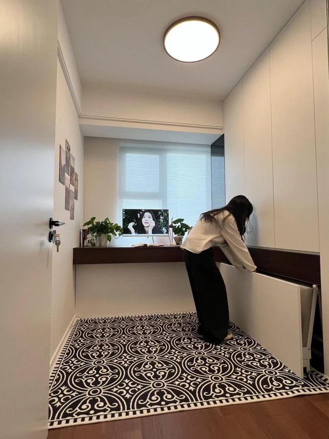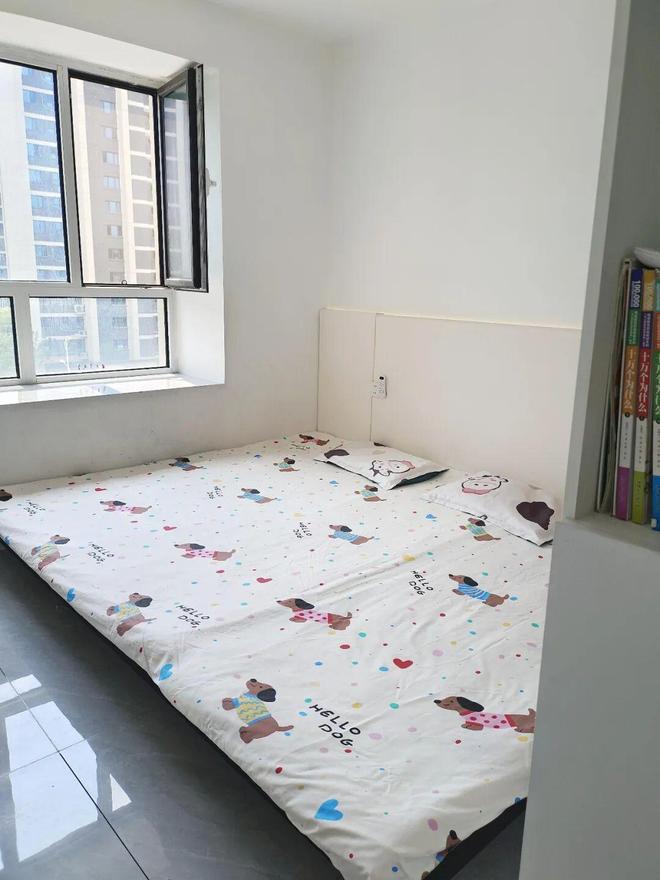 我们可以参考一下网友@阿愿的做法,购买一张可伸缩式的床,再搭配一张折叠床垫,可以当儿童床用,也可以当客床用。