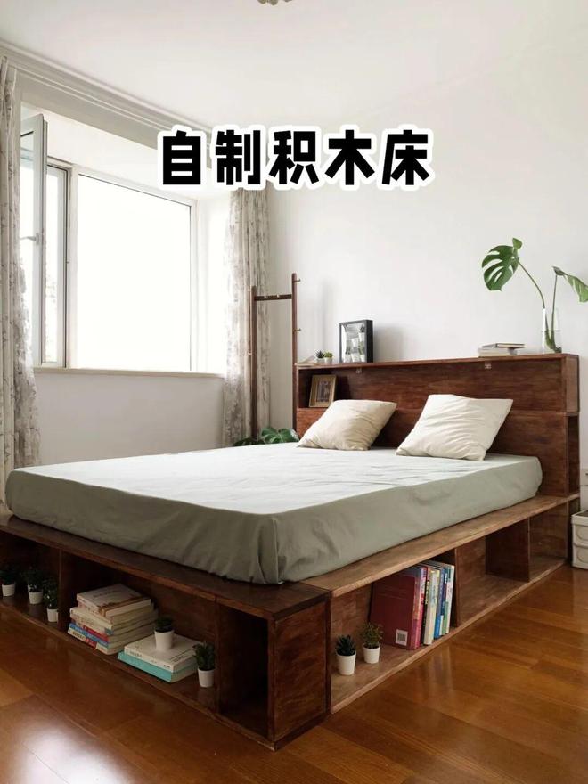 如果你喜欢动手,想要一张完全属于自己的床,可以像网友@美墅生当家一样,用木板拼出一张积木床。