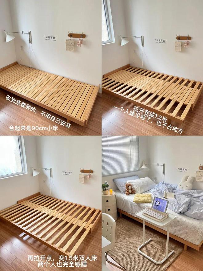 合起来后是一张90cm的单人床,展开后是一张160cm的双人床,既节省了空间,又十分灵活。