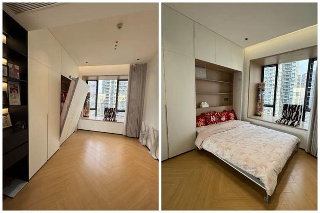传统的墨菲床,虽然起到了节省空间的作用,但床本身就占用了一大块空间,多少有些浪费。