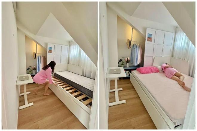 所以一些年轻人便开始主动放弃买“传统床”,并通过脑洞大开的方式,让卧室不再被传统床“绑定”。