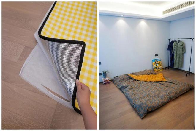 此外,你也可以像网友@小鹿快跑一样,连床垫也不要了,直接用铝膜防潮垫+两层被褥组合成一张床,比如适合临时过渡。