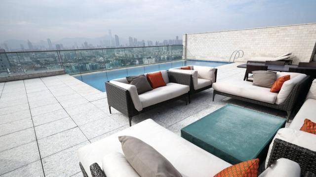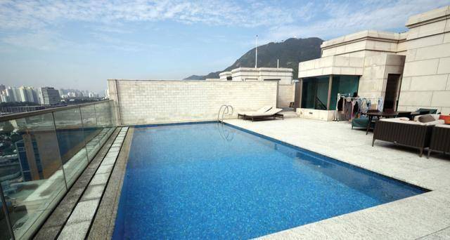 这一套豪宅位于九龙塘广播道的逸珑5座顶层,200多平方米的面积,四房间隔,顶楼有露天平台以及私人泳池。