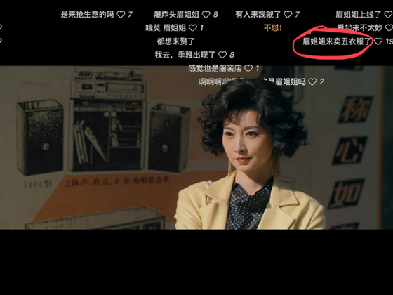 此次在《你好1983》中,斓曦客串的“季雅”,仿佛是为她量身定制的角色。剧中的她,顶着一头夸张的爆炸头,身着色彩艳丽的碎花衬衫、宽大的涤卡外套,搭配喇叭裤,操着一口地道的东北腔招呼顾客“新到的的确良,不抢就没了啊”,浑身透着80年代的烟火气。这造型一登场,观众瞬间联想到她现实中的私服,弹幕立刻密集刷屏:“眉姐姐怎么来卖丑衣服了”“这衣服我妈都嫌土”“分明是把自己的衣柜搬来了吧”,喜剧效果直接拉满,甚至有网友调侃“主角团不用战了,这局眉姐姐稳赢”。