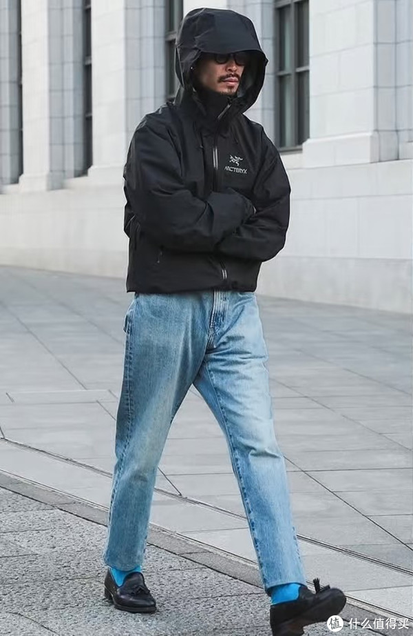 高级感的穿搭往往注重细节的拿捏,在始祖鸟冲锋衣的搭配中,除了讲究配什么裤子之外,对于鞋袜细节搭配也不容忽视,丰富足下艺术更能彰显品味。不局限于运动鞋,可以尝试皮鞋与亮色袜子的搭配,看似不协调的组合,却意外时髦。牛仔裤与蓝色袜子颜色过渡自然,配色做减法,但用一种亮色就可以使整体造型更加与众不同。