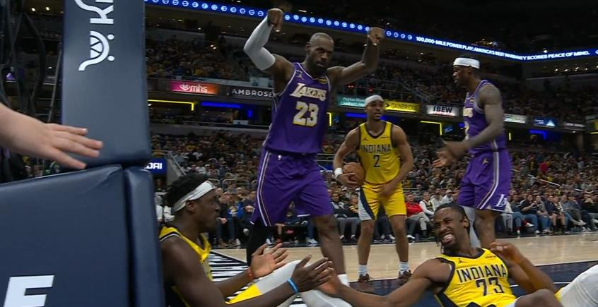 在湖人击败步行者的比赛中,41岁的詹姆斯多次上演名场面,空切隔扣步行者2米16的中锋赫夫,一条龙反击撞飞对手并且单臂隔扣赫夫,欧洲步上篮戏耍对手,步行者两名球员封盖不成还撞在一起摔倒,老詹指着嘲讽他们。