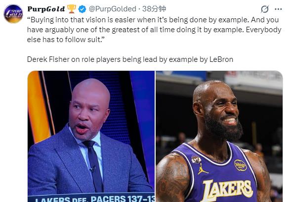 目前东契奇和里夫斯主攻,詹姆斯是湖人进攻的第三选择,他甘愿牺牲球权;在球场上,41岁的詹姆斯经常快攻以及空切扣篮,对于老詹的表现,湖人名宿费舍尔点评道:如果勒布朗都在按照要求扮演好自己的角色,你就不能质疑自己被要求扮演的角色,这种态度会从上到下影响整个球队;当有人以身作则时,人们就更容易接受这种理念。而现在,一位堪称史上最伟大的人物正在以身作则。其他人都必须效仿。