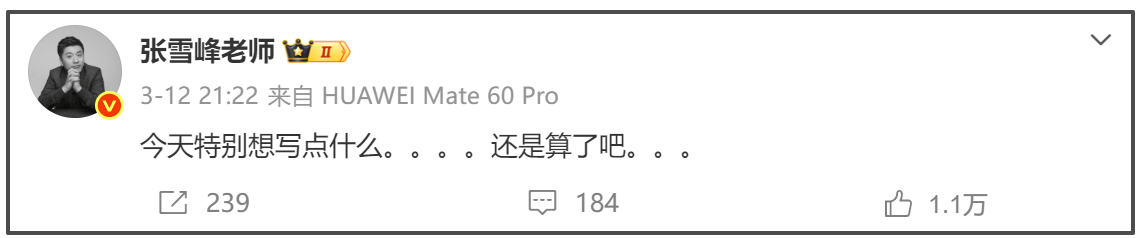 张雪峰生前最后一条微博,还发了一条不明所以的内容,说“特别想写点什么,还是算了吧。”当时评论区就有粉丝劝他多休息。