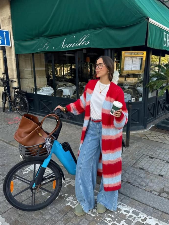 除了色彩与版型,florettenacer 的穿搭精髓还在于细节与质感。她擅长用简约的配饰提升造型完整度,一条细项链、一对简约耳环、一顶复古帽子或是一只质感包包,就能让基础穿搭立刻有层次。她也格外注重面料的选择,柔软的针织、垂坠的棉麻、挺括的牛仔,在她的搭配里各司其职,让造型看起来舒服又高级。这种不追求爆款、只专注质感的穿搭思路,恰恰是我们普通人最容易学习、也最能穿出个人特色的关键。