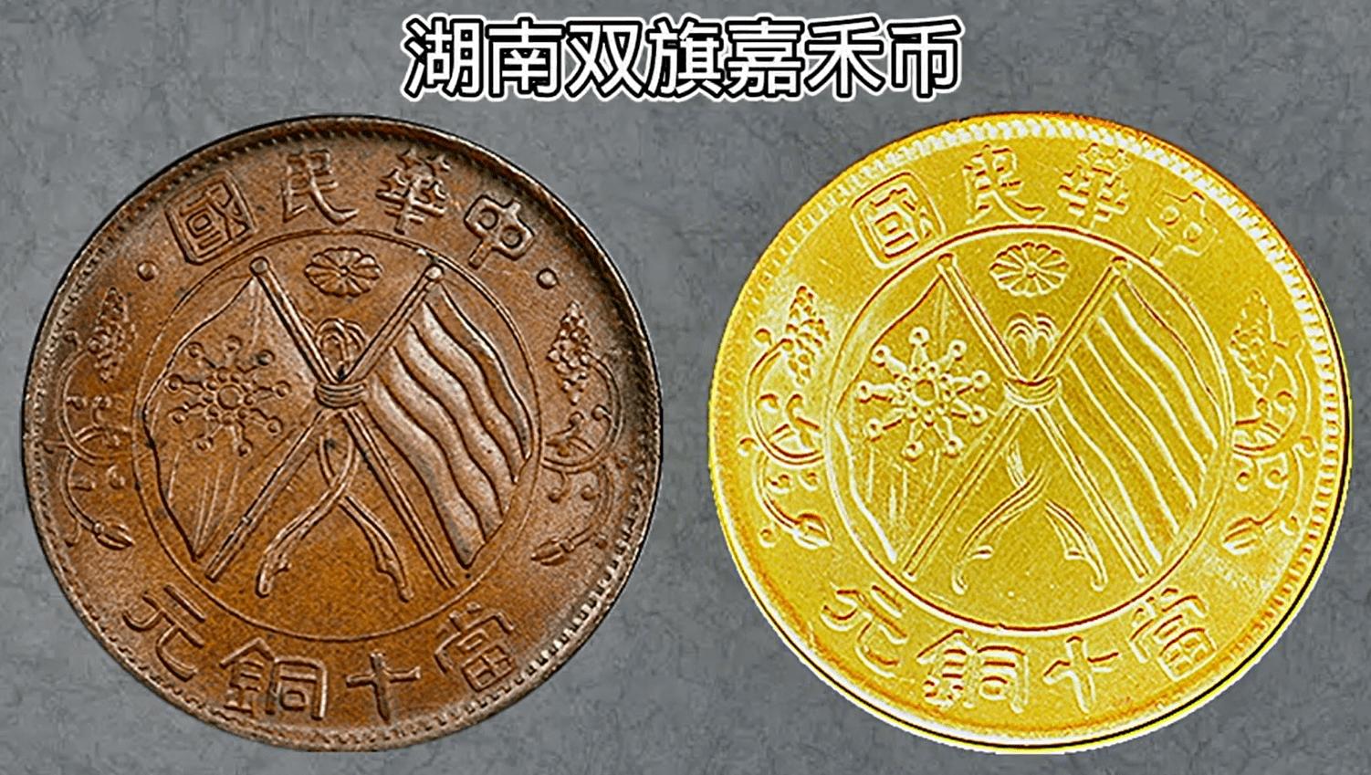 湖南当十双旗币,是市面上最常见的双旗币版本,没有之一。这类双旗币,由湖南造币厂大量铸造,从1912年开始,流通范围覆盖湖南全省,甚至延伸到周边省份,存世量极大,估计超3000万枚。