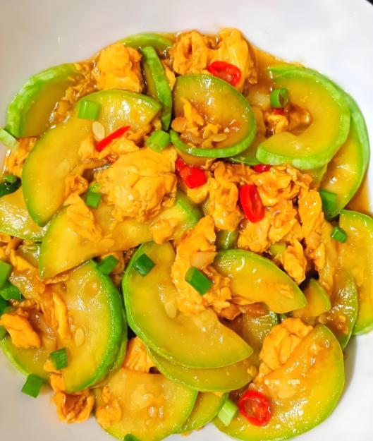 7. 出锅装盘:炒至西葫芦完全熟透,鸡蛋和西葫芦的味道充分融合后,关火,装盘即可。